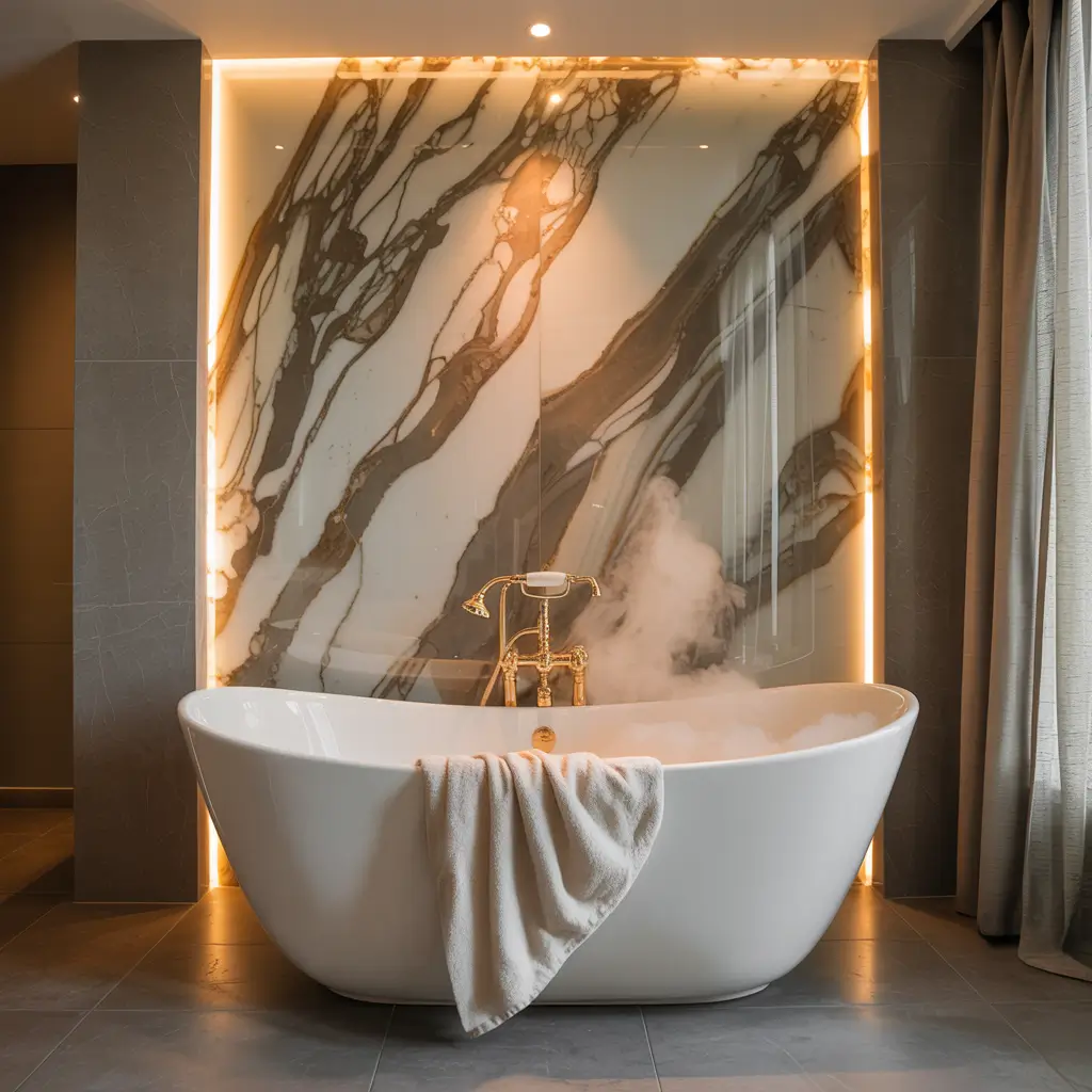 - One accent wall in deep blue or black for the space backdrop