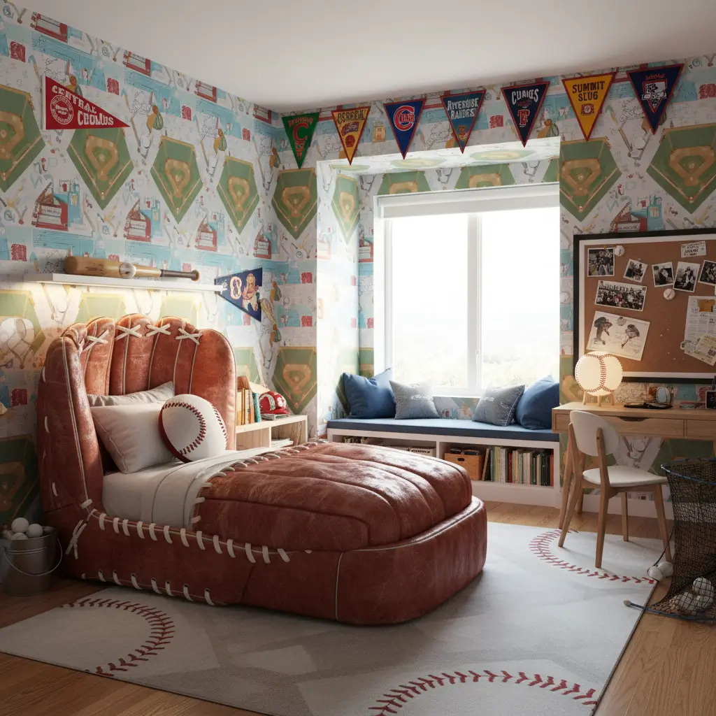Baseball bedrooms work brilliantly when you embrace the vintage Americana vibe instead of just plastering logos everywhere. The classic aesthetic of baseball – those old stadium feels and timeless equipment – creates sophisticated sports spaces. I designed a baseball retreat for my cousin’s 12-year-old who lives and breathes Little League, and the result looks like a mini Cooperstown museum.