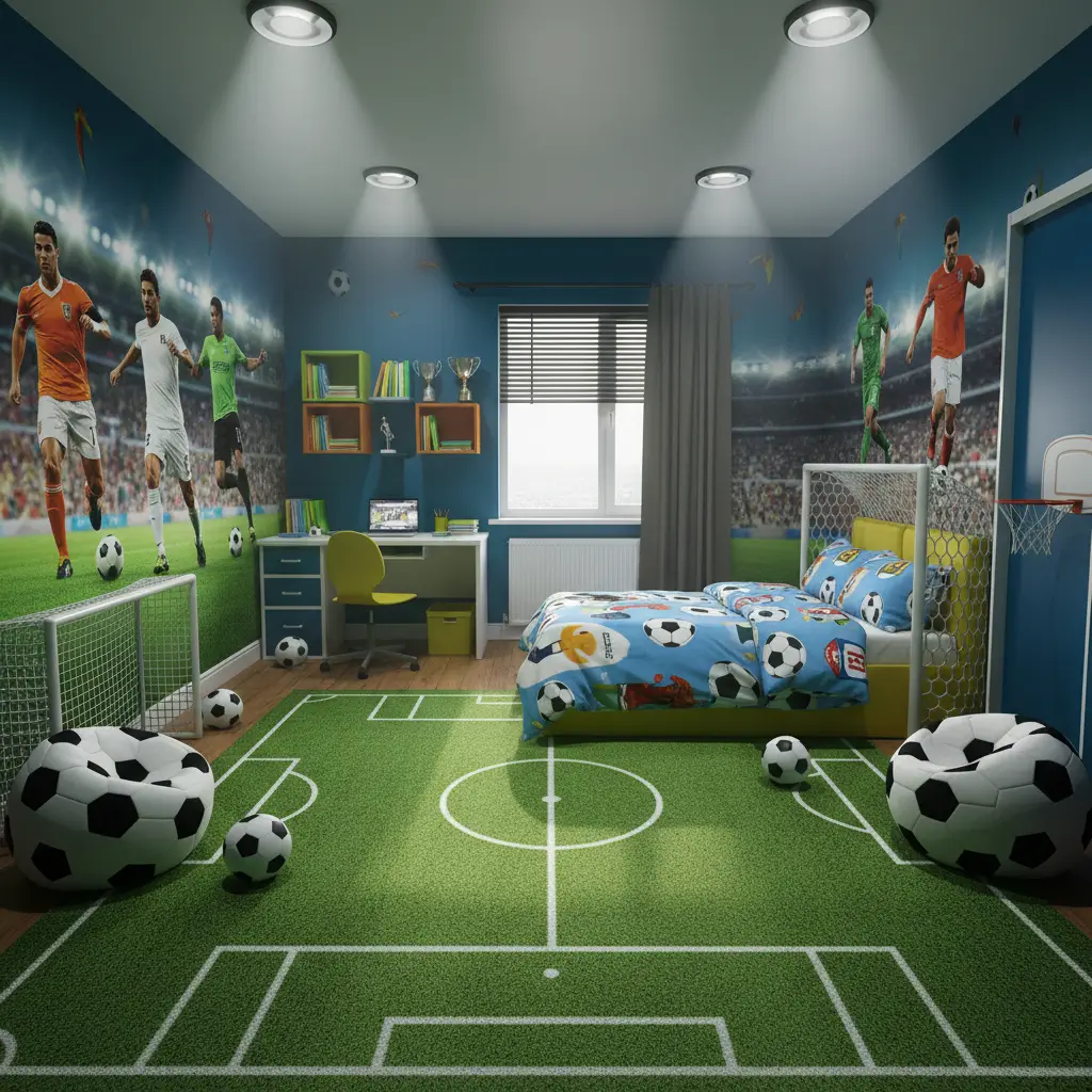 The genius move was installing a small indoor goal in one corner with a foam ball for practicing headers and volleys. It keeps him active even on rainy days and makes his room genuinely functional for his sport. His parents weren’t thrilled about the initial idea, but he hasn’t broken anything yet (knock on wood).
