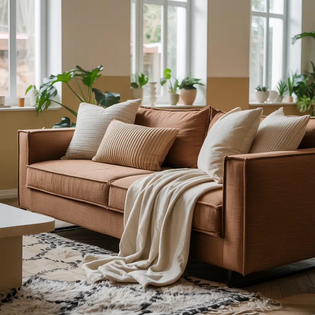 I learned this approach works year-round. Just swap lighter linens in summer for heavier wools in winter, and your brown couch adapts perfectly.