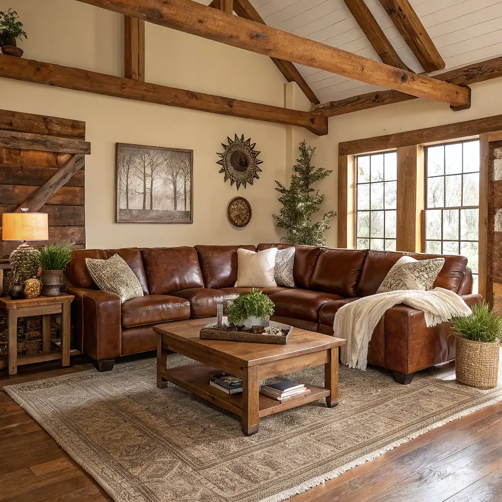 The combination works because rustic style celebrates the same things that make leather appealing—natural beauty, character that develops with age, and materials that tell a story. Your leather couch becomes the heart of a space that feels collected rather than decorated.