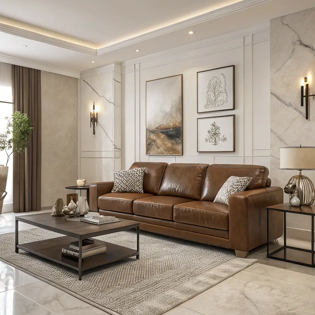 A brown leather couch is like that friend who gets along with everyone. It never tries too hard, ages gracefully, and somehow makes everything around it look better.