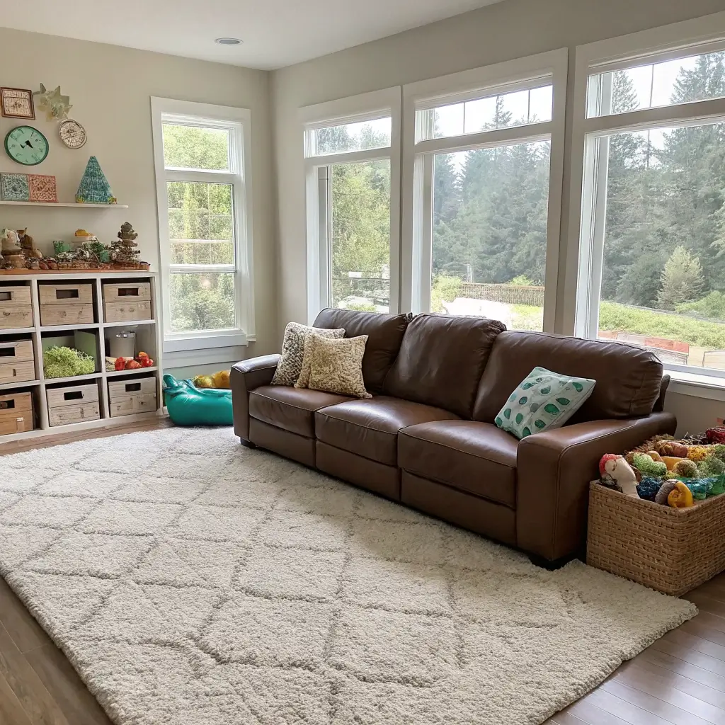 Brown leather couches create the perfect foundation for living rooms that actually get lived in. This approach balances real-life practicality with style for spaces that welcome everyone from toddlers to teens to four-legged family members.