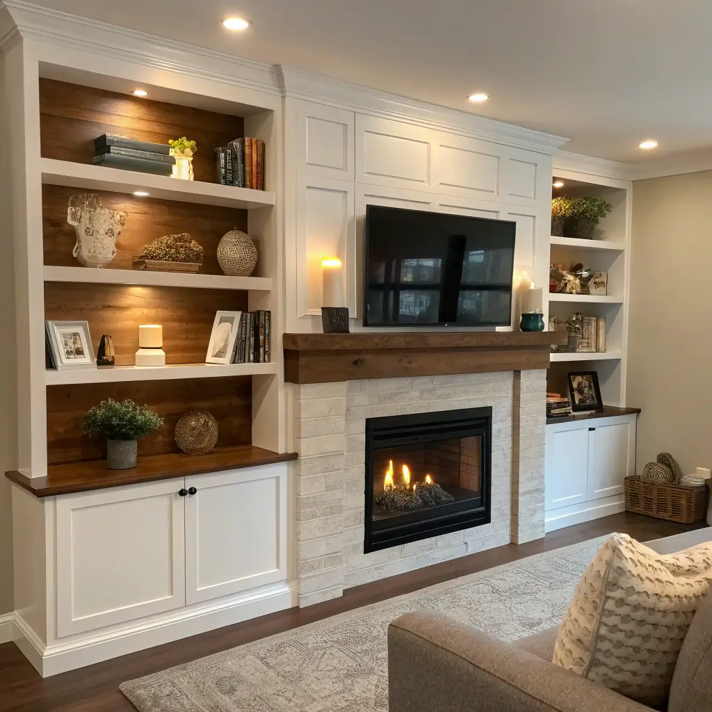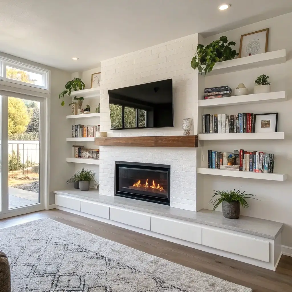 Your fireplace wall can be so much more than just a fireplace. Whether you go modern with floating shelves or traditional with library built-ins, the right design transforms your entire living room.