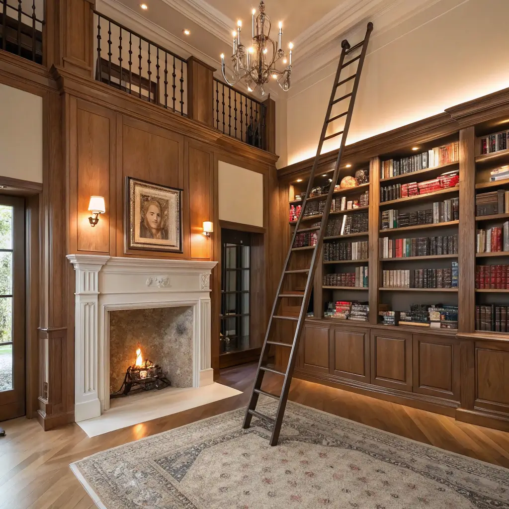 Include a library ladder. Tall shelves need access solutions. I installed a rolling ladder that looks amazing and actually gets used daily. Form meets function in the best way.