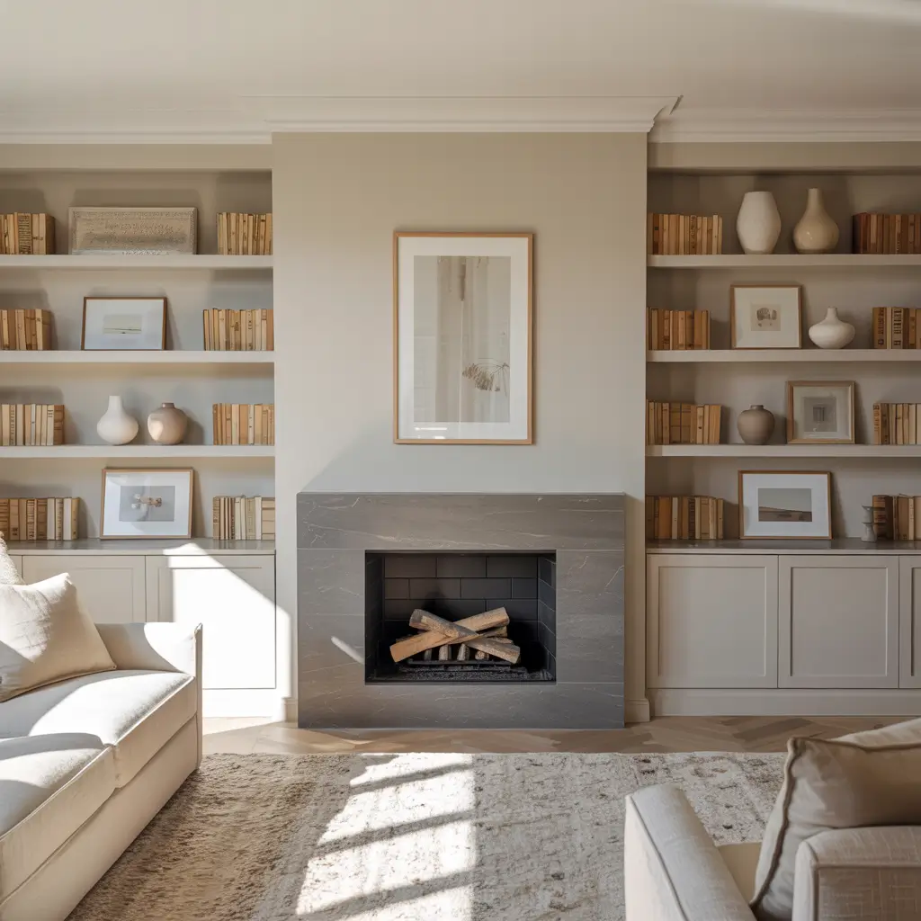 Built-in shelves around a fireplace aren’t just about storage – they’re about creating an architectural feature that makes your living room look intentionally designed rather than randomly furnished.