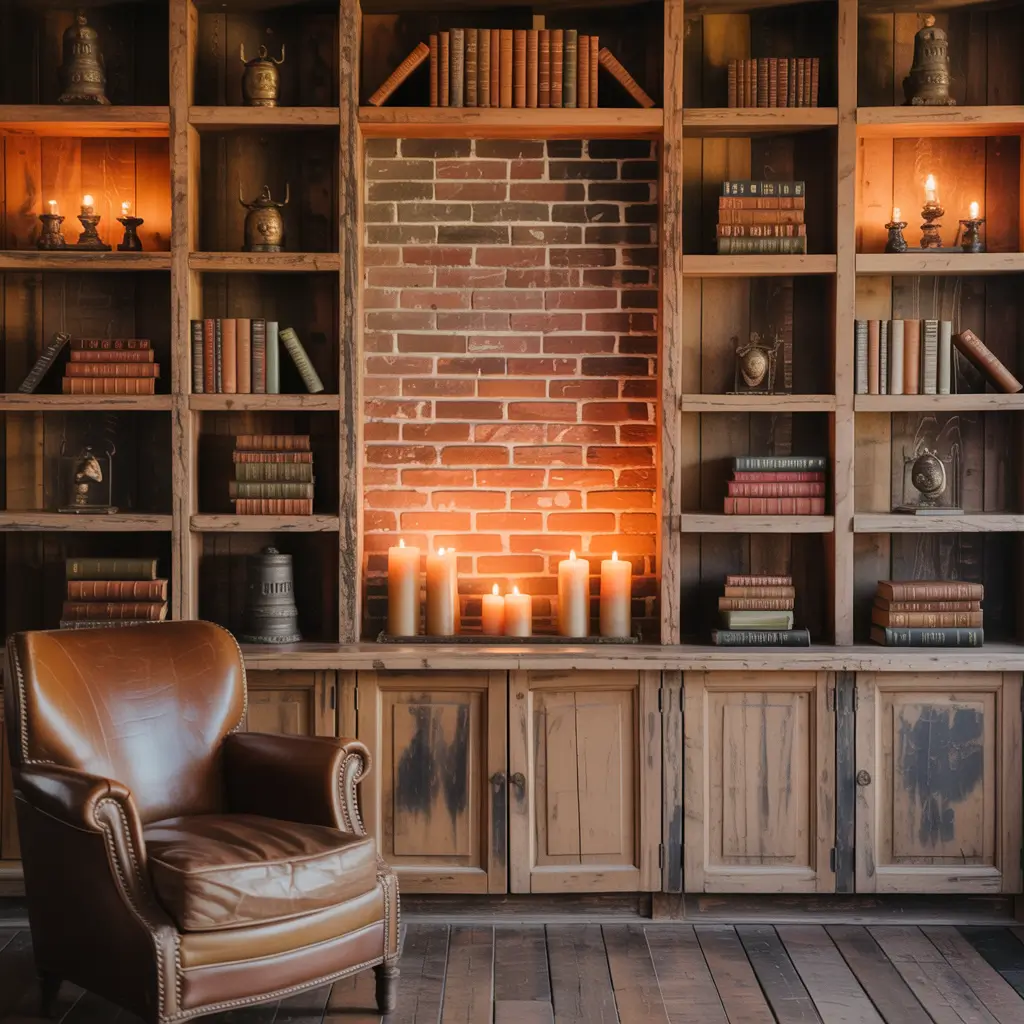 Remember when everyone suddenly decided they wanted to live in a cabin in the woods? Rustic wooden built-ins give you that vibe without the bears and outdoor plumbing. I built these in my friend’s living room, and now her city apartment feels like a cozy mountain retreat.