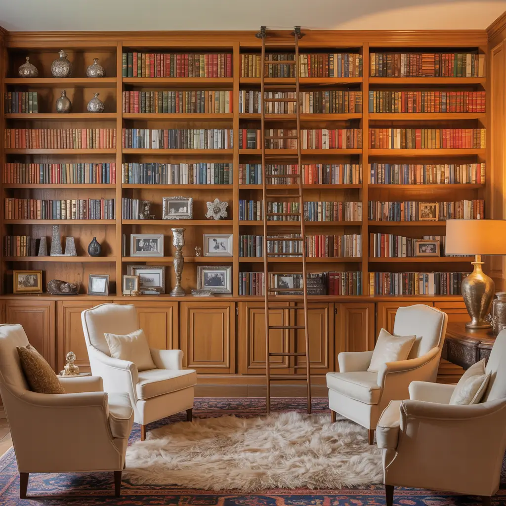 Install a rolling ladder if you can swing it. I cheaped out initially and used a step stool, but climbing up and down got old fast. The ladder adds that authentic library feel and makes accessing high shelves actually enjoyable. Plus, sliding across on it makes you feel like you’re in a movie montage.