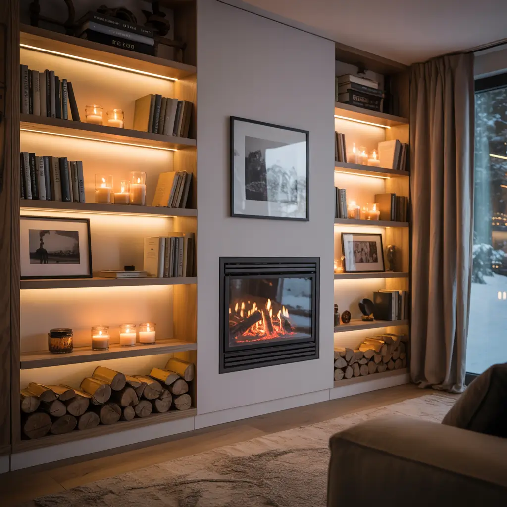 Heat rises, so plan accordingly. Don’t put your vinyl collection or candles on shelves directly above the fireplace unless you enjoy modern art made from melted objects. I learned this watching my friend’s candle collection slowly transform into abstract sculptures.