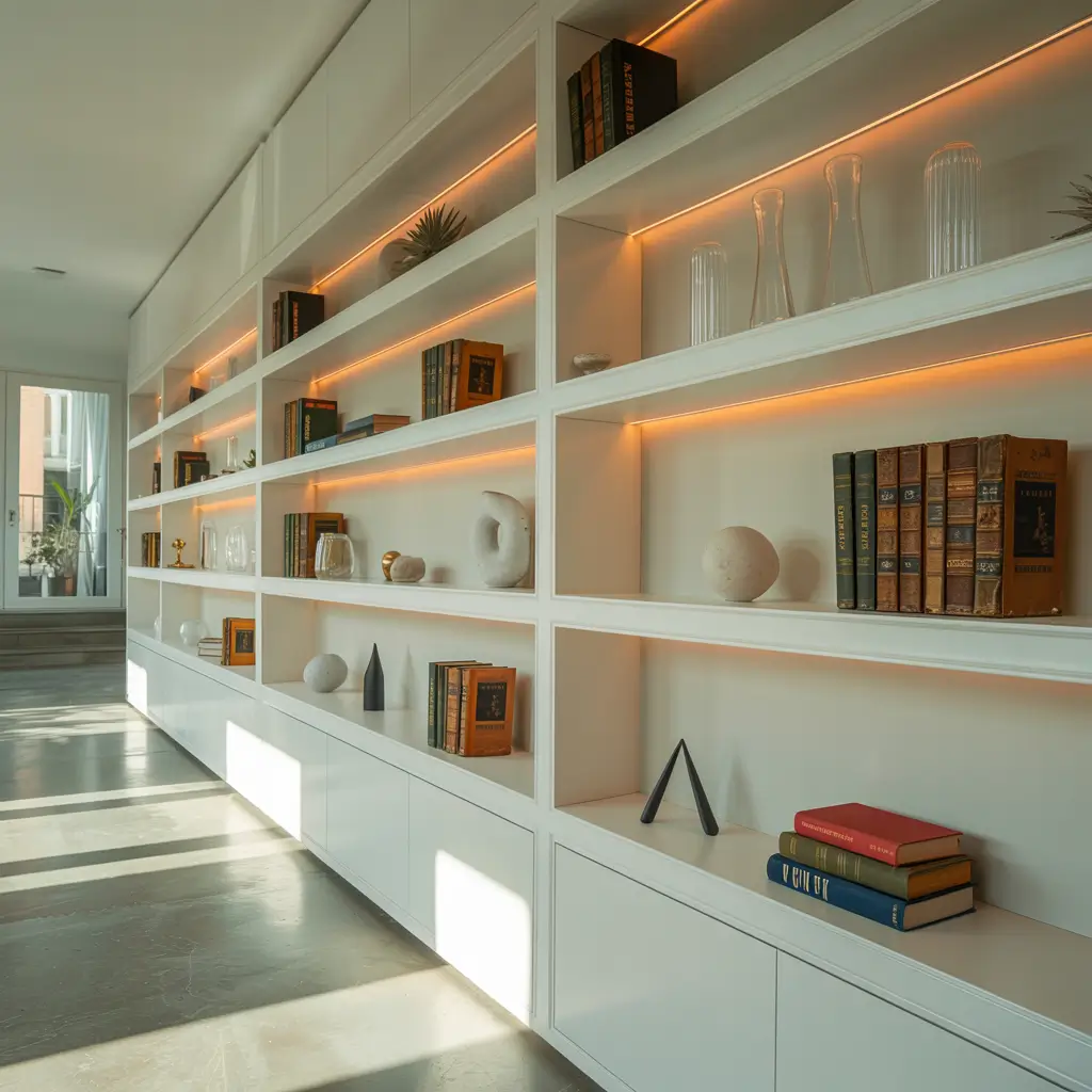 White Elegant Built-In Shelves with LED Lighting: The Instagram Dream