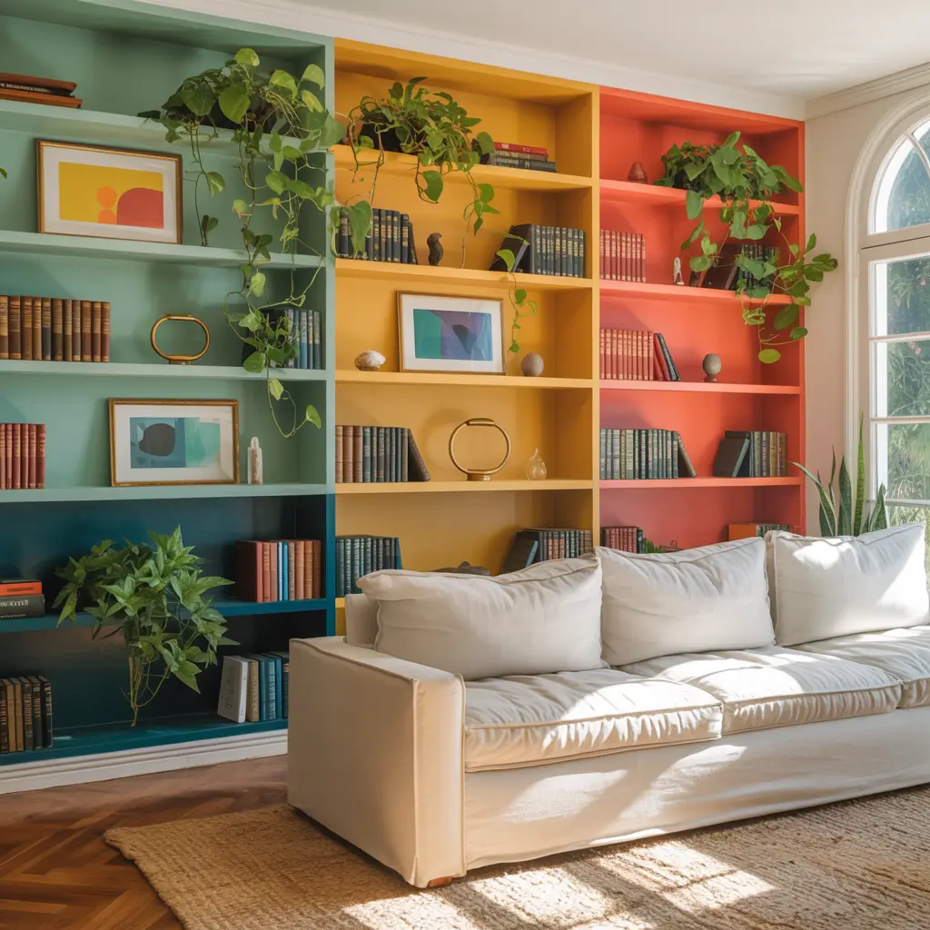 Colorful Accent Built-In Shelves: The Personality Pop