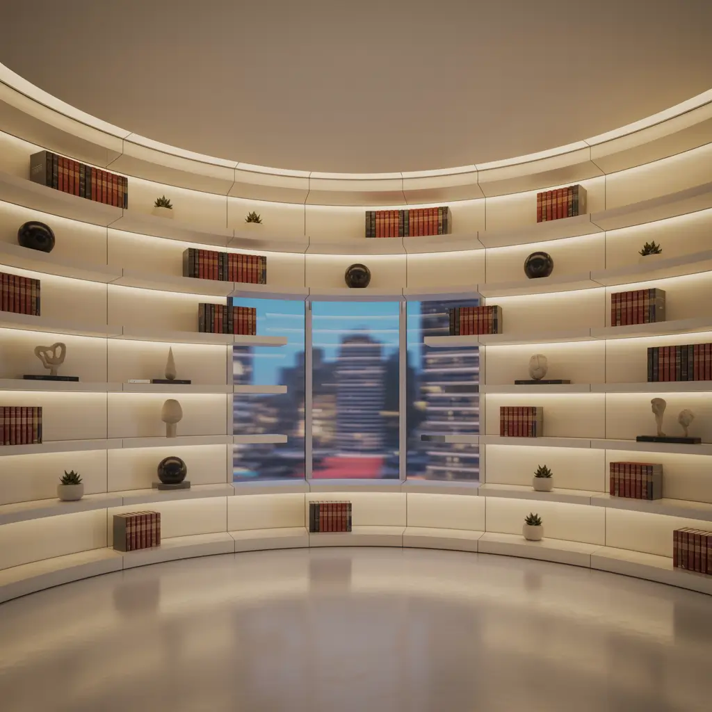 Styling curved shelves needs extra thought. Straight-edged books look amazing against curves, while too many round objects can feel repetitive. I balance geometric and organic shapes for visual interest.
