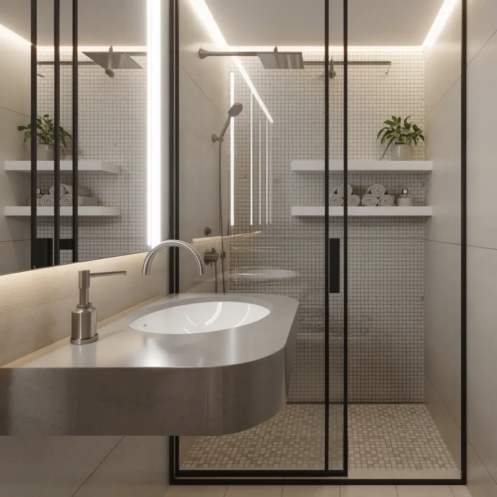 Frameless shower doors beat curtains for minimalist look. I installed a simple glass panel, and it keeps water contained while maintaining those clean sight lines minimalists love.