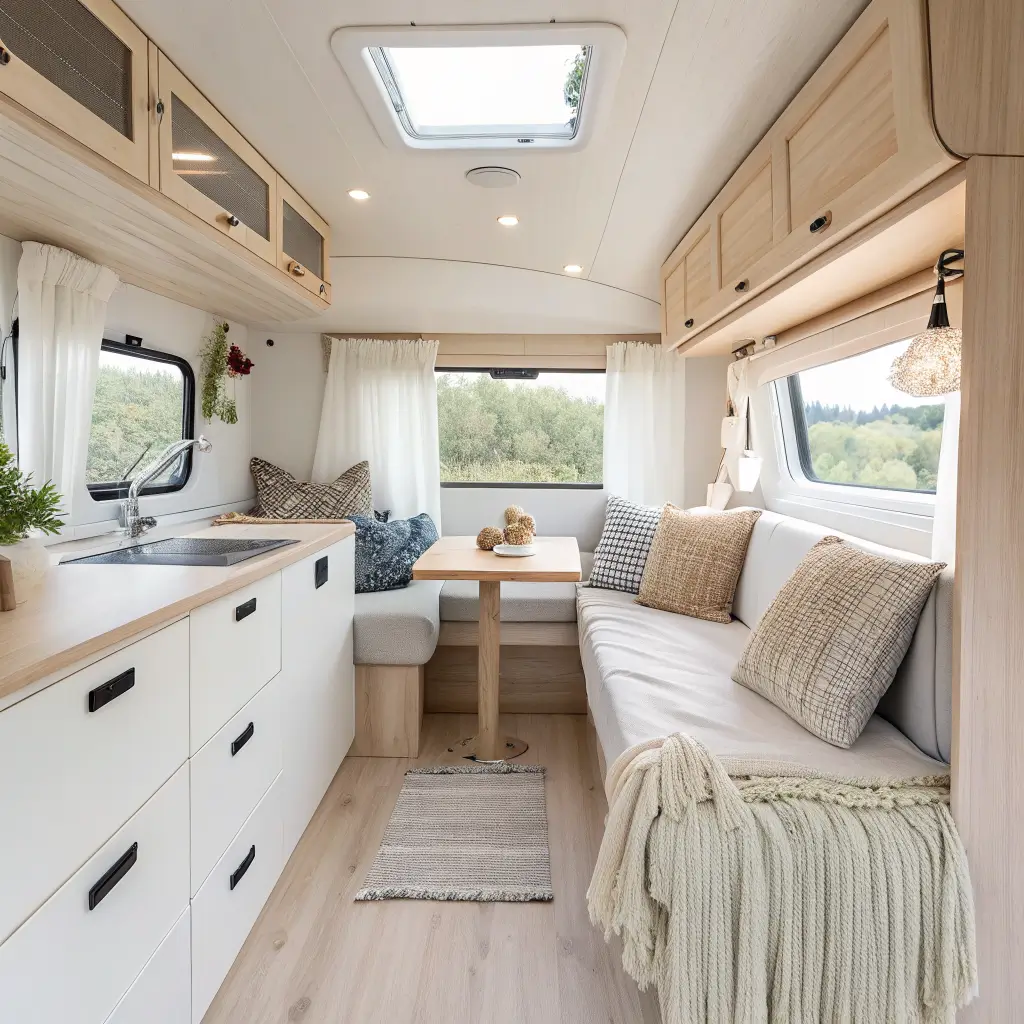 Scandinavian design works perfectly for modern camper builds and minimalist travelers who value simplicity without coldness.