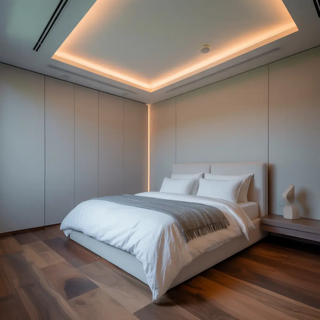 Hidden light panels create this futuristic effect where your ceiling appears to glow from within. My friend installed backlit panels in his bedroom, and the soft, even illumination creates this incredible ambiance—like sleeping under a softly glowing sky.