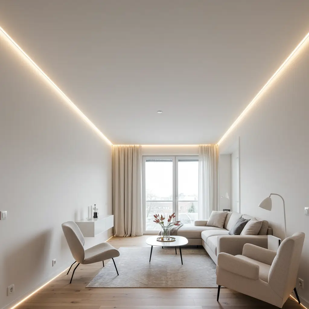 Layer your lighting types for maximum flexibility. My cove has warm white strips for ambiance. The center has cool white for tasks. Reading lights provide focused illumination. Each circuit has separate controls for infinite combinations.