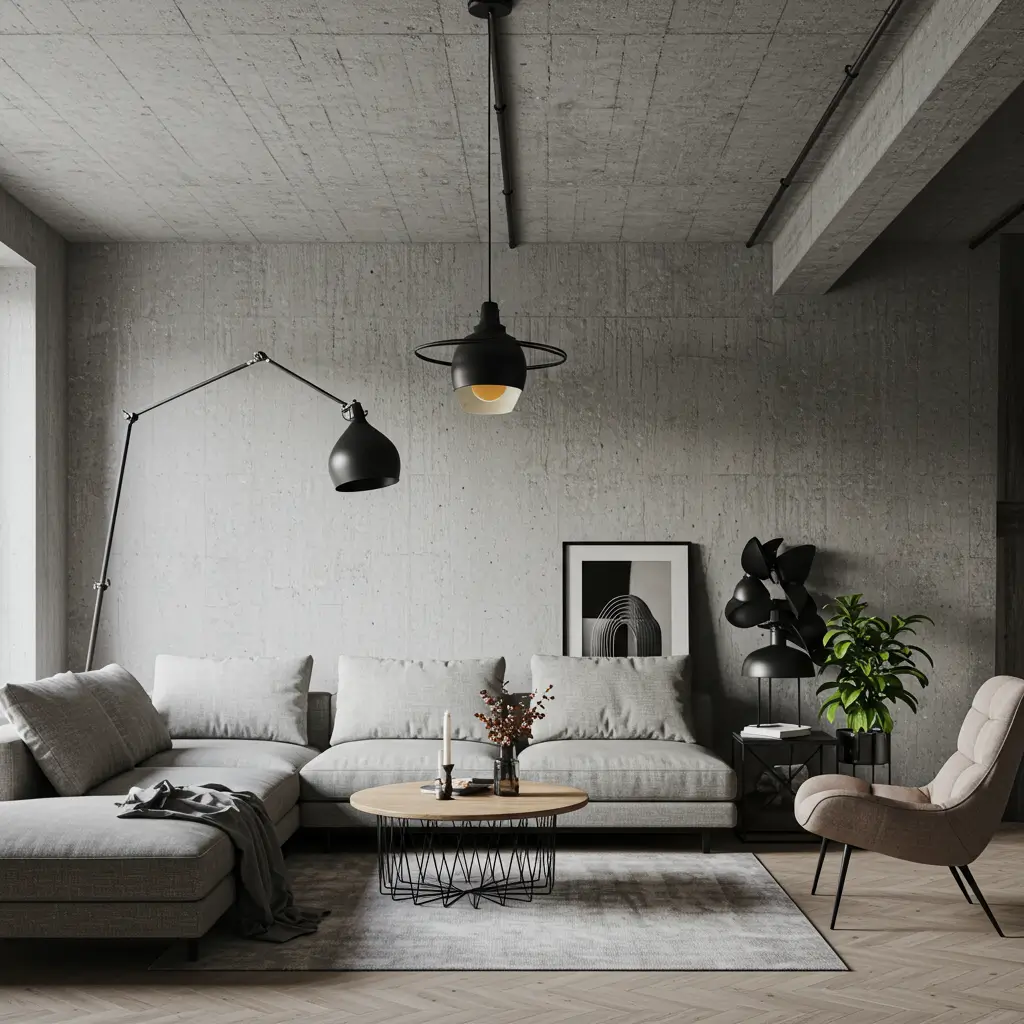 Soften concrete with contrasting textures. All hard surfaces feel cold and unwelcoming. My loft balances concrete with soft furnishings, warm wood, and plenty of textiles. The contrast makes both elements more impactful.