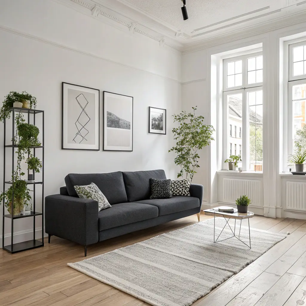 To keep the room feeling cohesive, try incorporating “greige” (grey-beige) accents. This bridges the gap between your cool charcoal couch and any warm wood furniture. It creates a seamless flow that makes the room feel airy and expansive. Is it just me, or does a Scandi room make you want to drink tea and stare out a window for three hours?