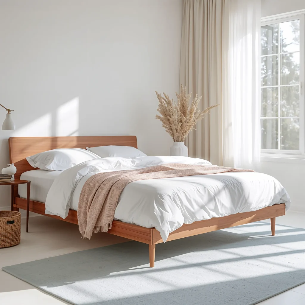 Now we’re talking my language! Nothing beats the cozy factor of cherry wood when you layer it right. This style is all about creating that “never want to leave bed” feeling.