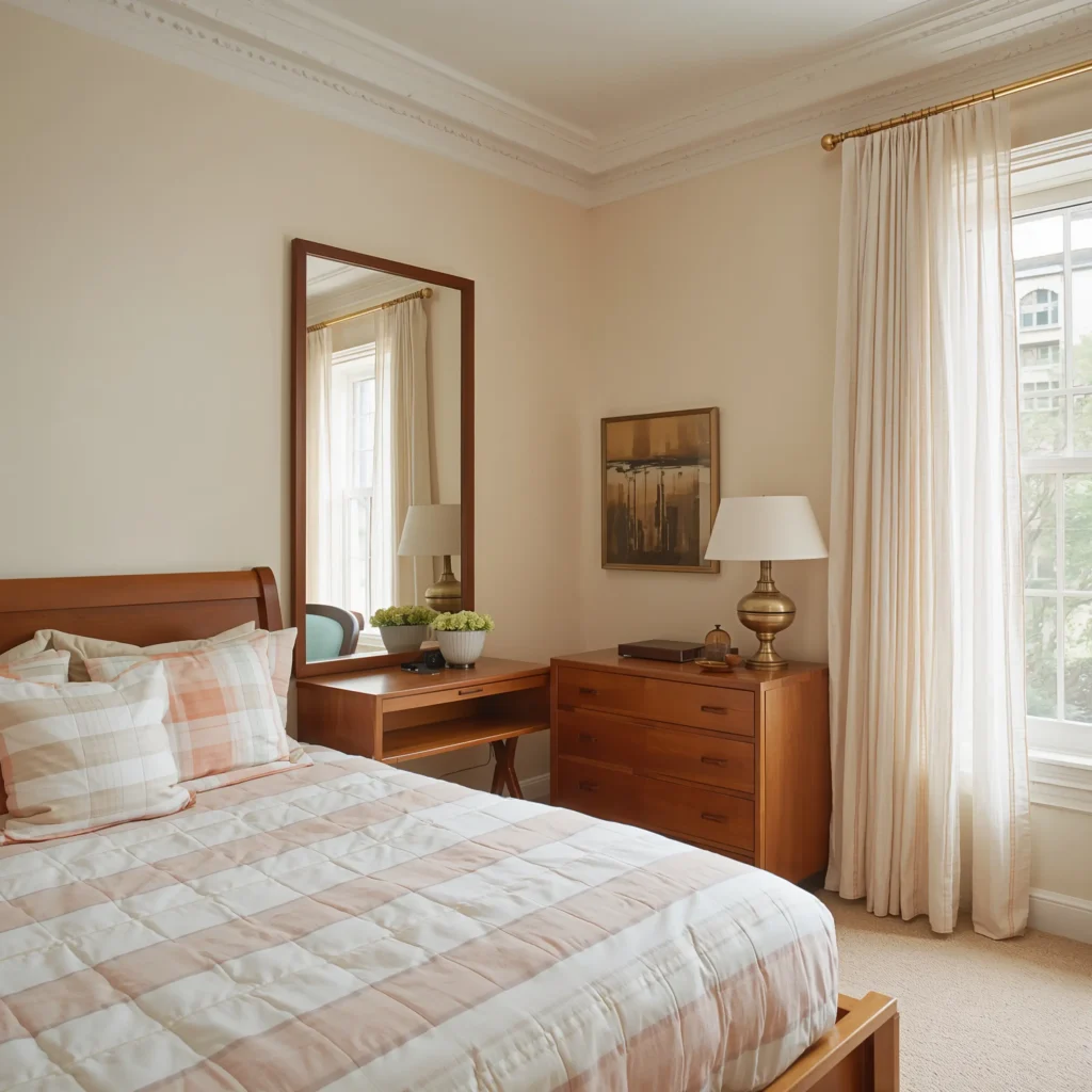 Traditional patterns work beautifully here. Think plaids, subtle florals, or classic stripes. And don’t skimp on quality – solid cherry wood pieces are investments that’ll last generations. My parents still have their cherry wood bedroom set from 1985, and it looks better now than when they bought it!