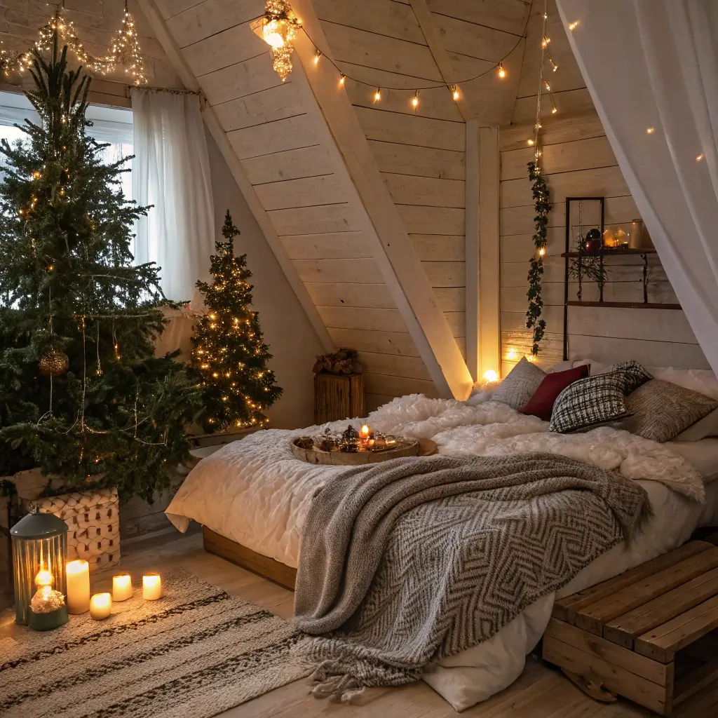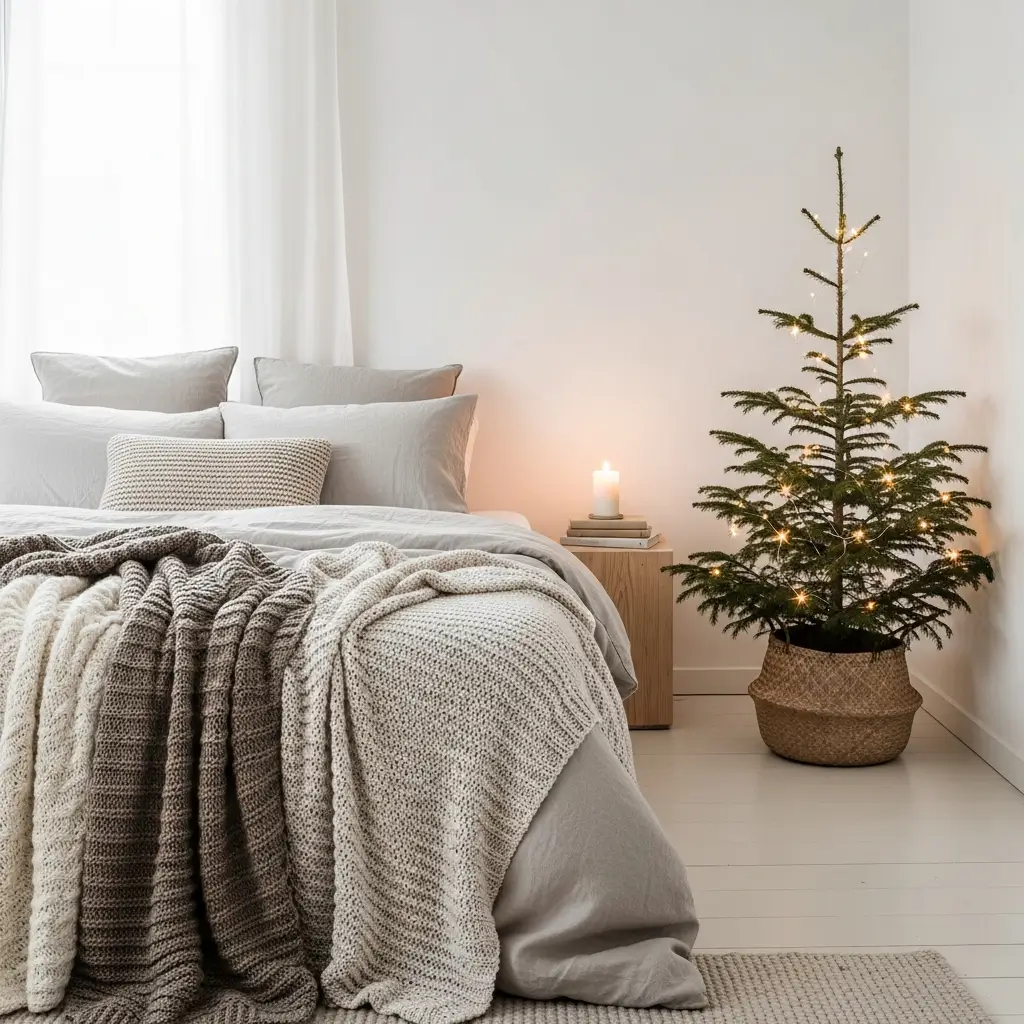 Embrace the Danish concept of hygge with a Christmas bedroom aesthetic focused on comfort, warmth, and contentment. This is about feeling good, not just looking good.