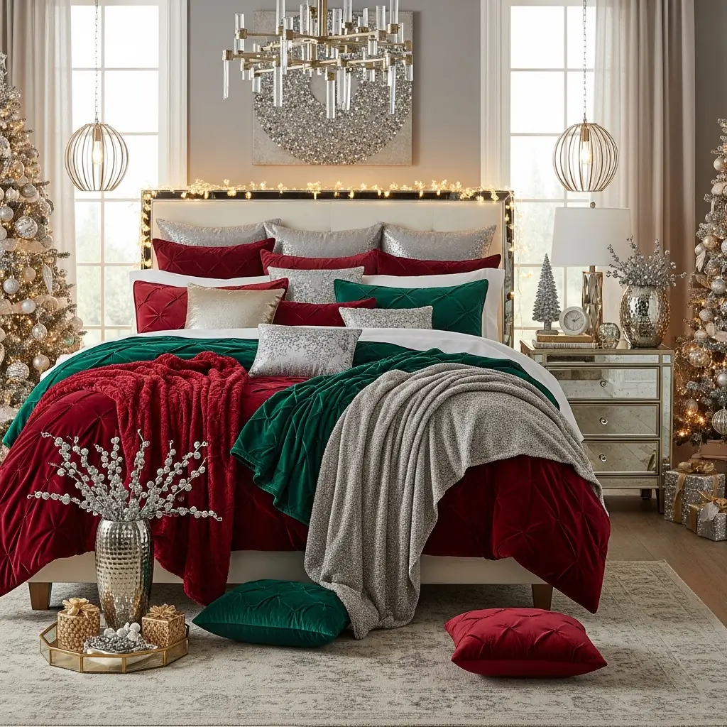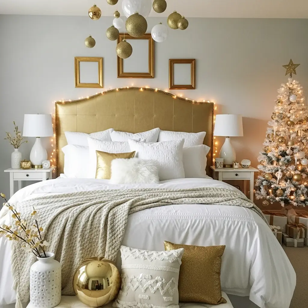 This aesthetic makes your bedroom feel like a luxury hotel suite during the holidays.