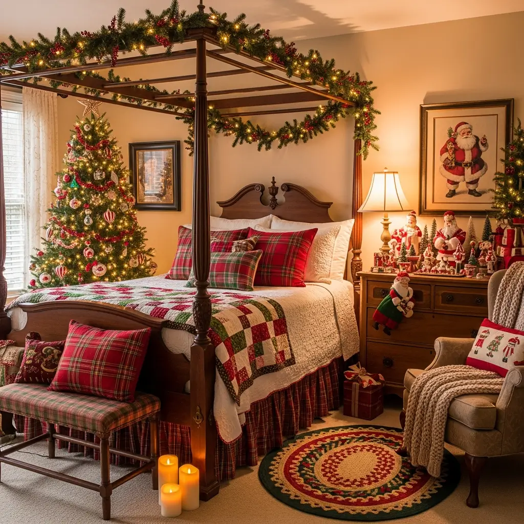 This aesthetic creates conversations and memories, making your bedroom feel like a time capsule of Christmas joy.
