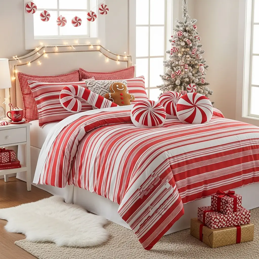 Obviously, red and white stripes are your foundation. Use them strategically – striped pillows, throws, or curtains, but not everything at once unless you want vertigo. Balance candy elements with sophisticated touches.
