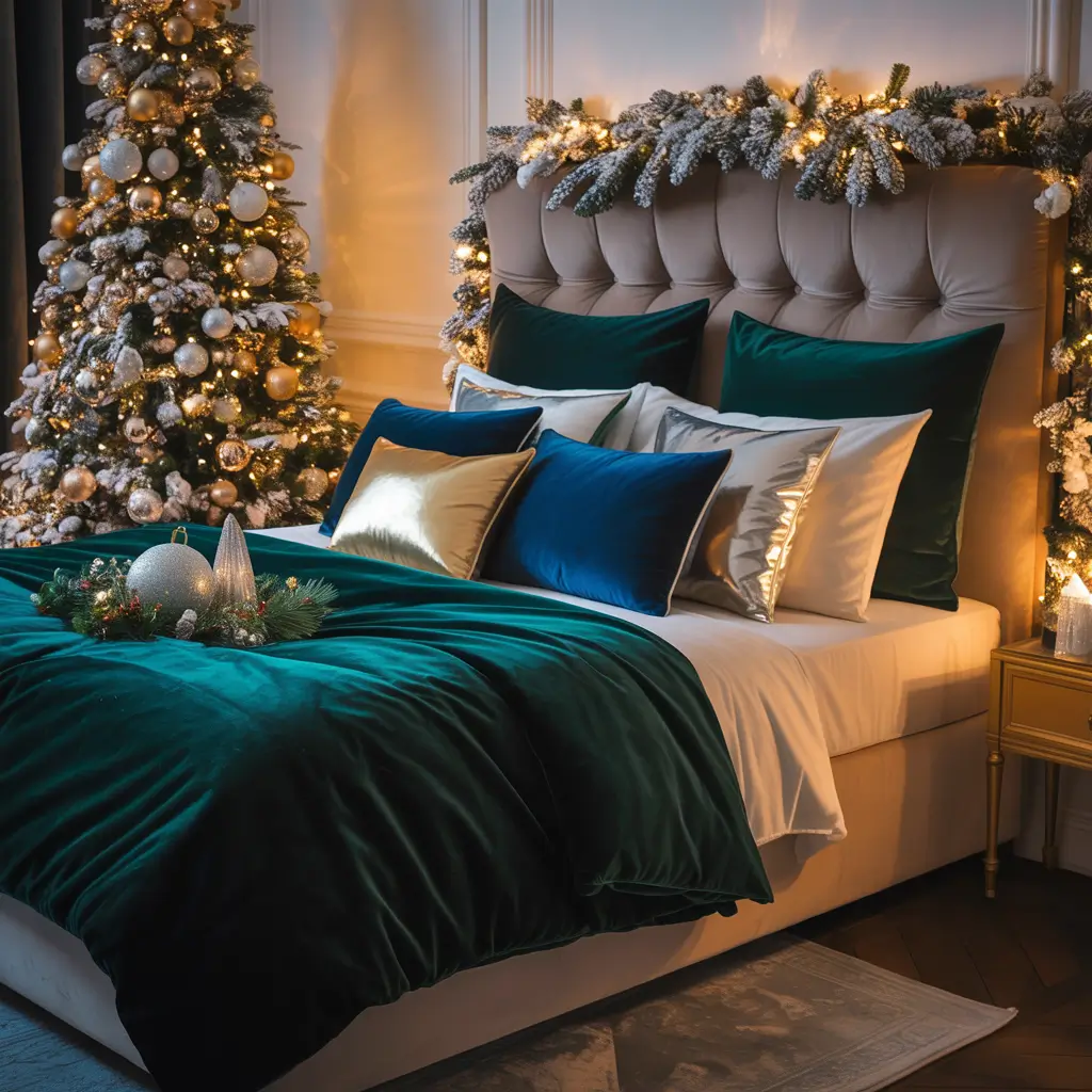 For those who believe Christmas should sparkle, this glamorous approach adds serious shine to your bedroom. We’re talking full-on festive luxury here.