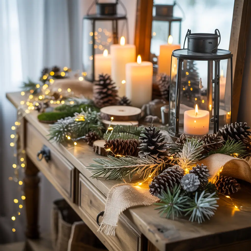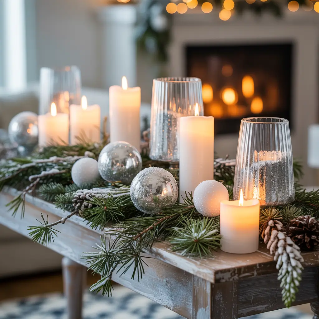 Nothing creates ambiance quite like the combination of soft candlelight and frosted greenery. This elegant display feels magical while remaining surprisingly simple to achieve.