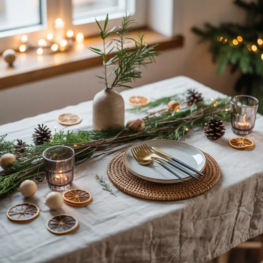 Sustainable eco-friendly Christmas decor celebrates the holidays while respecting the planet. This approach uses natural, reusable, and biodegradable materials to create beautiful tables with minimal environmental impact.