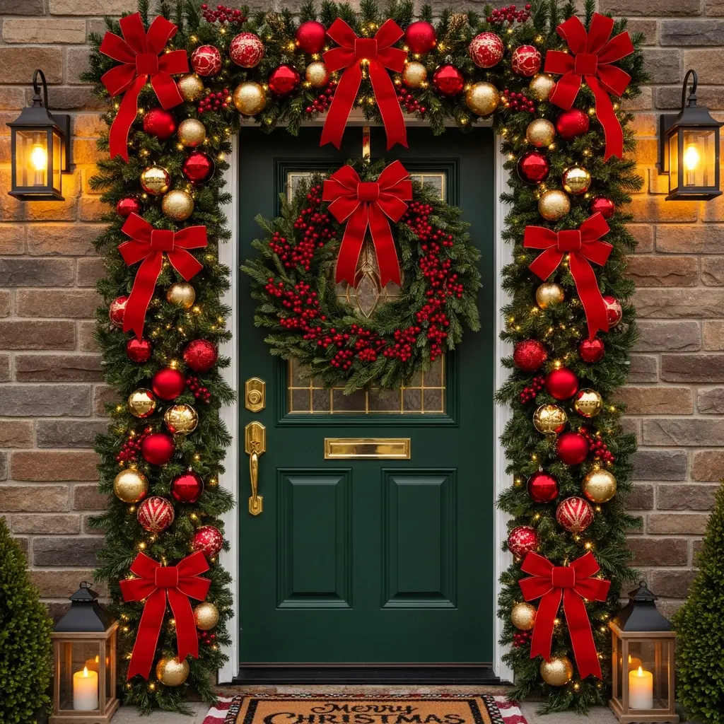 Classic Red & Green Christmas Door