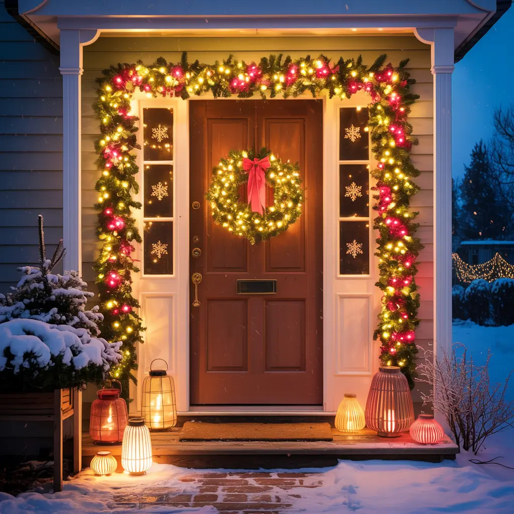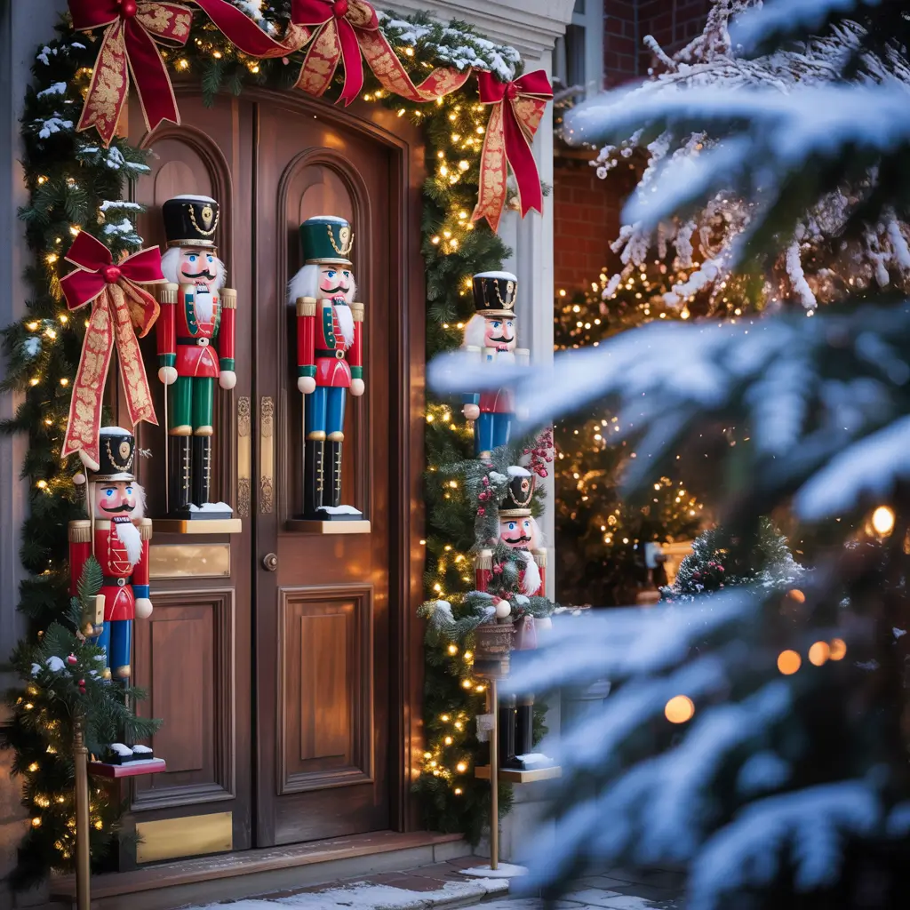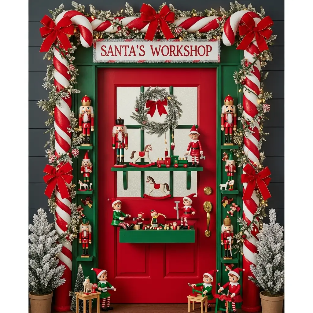 Transform your door into a life-sized nutcracker that guards your entrance. This theme stands out because it’s architectural – you’re literally turning your door into something else entirely.