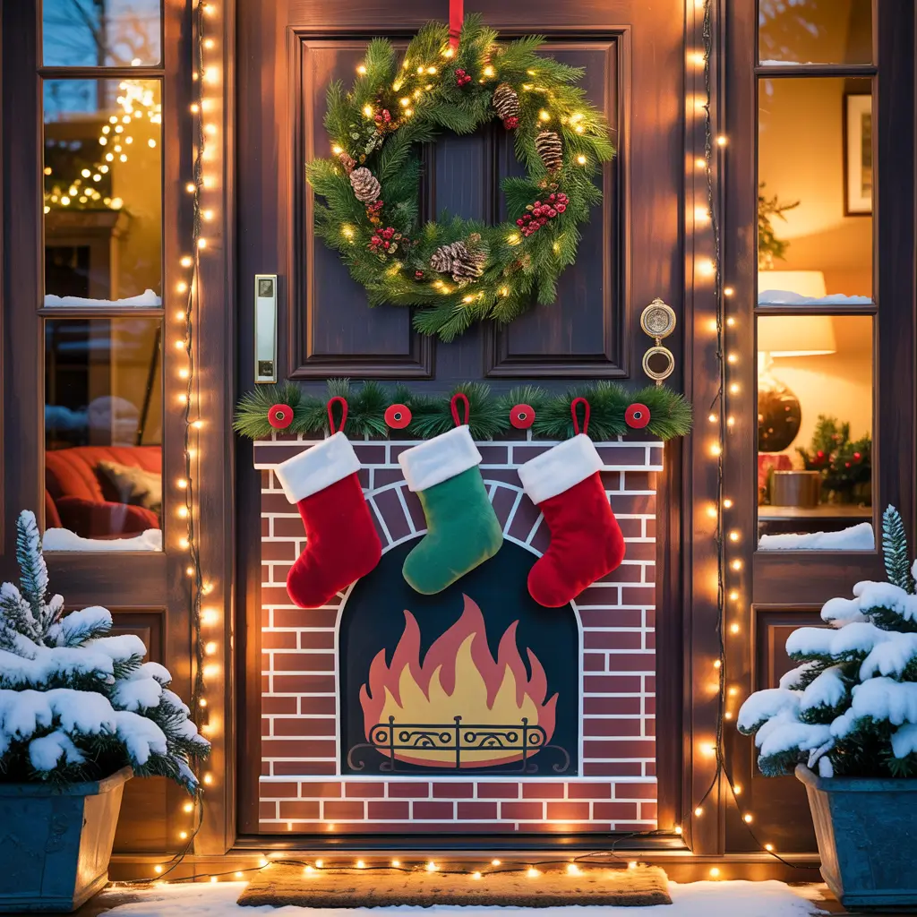 Cozy Fireplace Christmas Door
