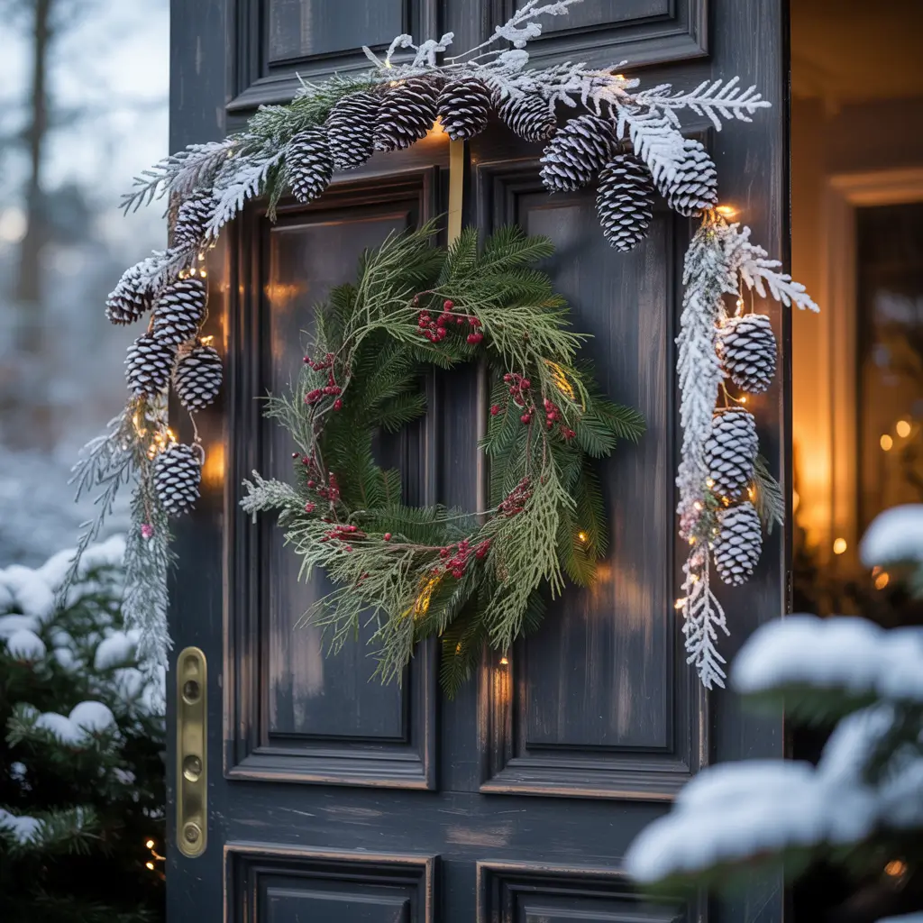 Frosted Pinecone & Garland Door