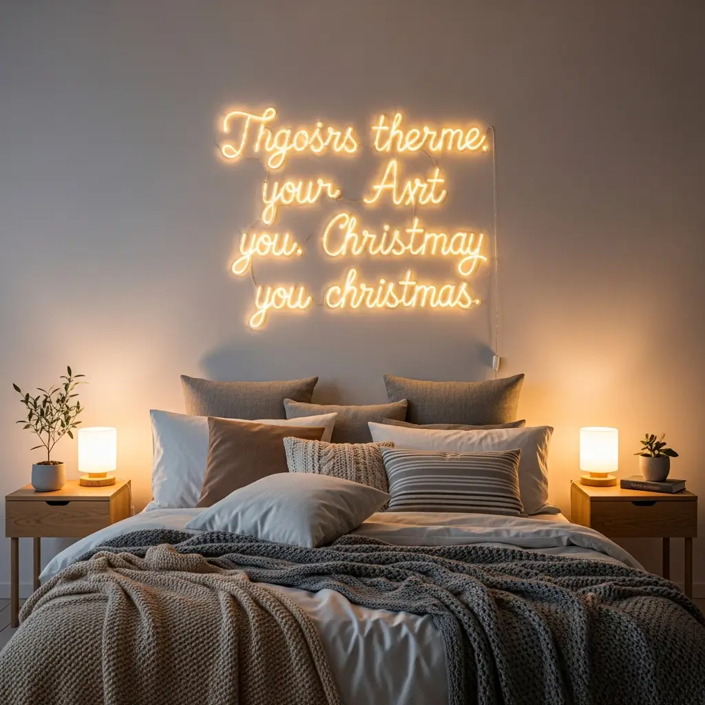 Spell out your favorite quotes, words, or even just “Merry Christmas” using lights shaped into letters. This personal touch makes your bedroom uniquely yours.