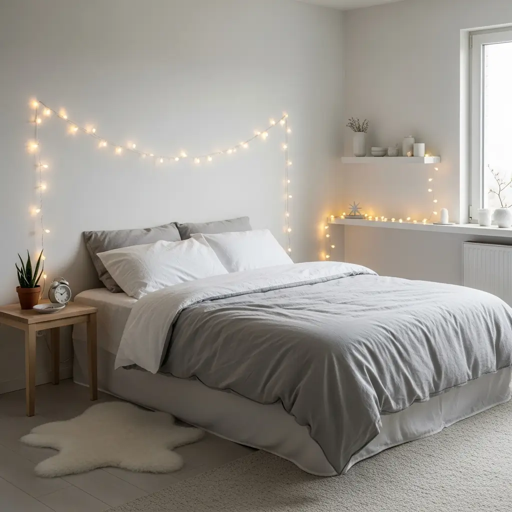 Choose one or two strategic locations for lights rather than covering every surface. A single strand along a picture rail or around one window creates ambiance without chaos.