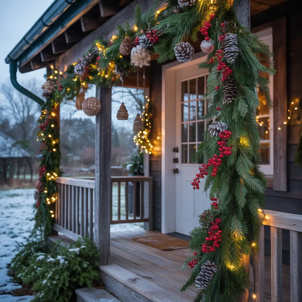 Fresh garland changes everything – the smell alone makes your porch feel like Christmas. Making your own saves money and lets you customize exactly what you want.
