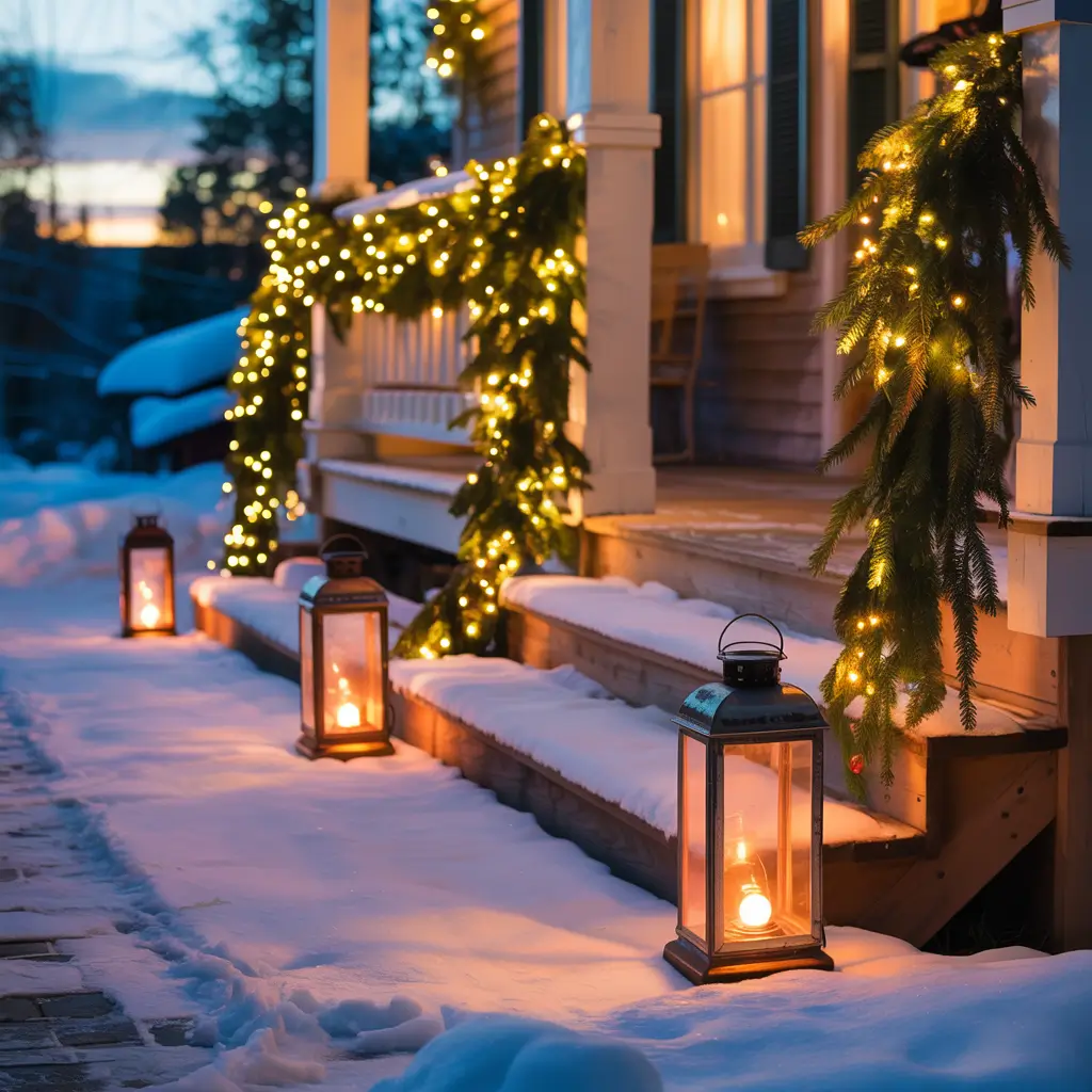 Lantern-Lit Winter Porch