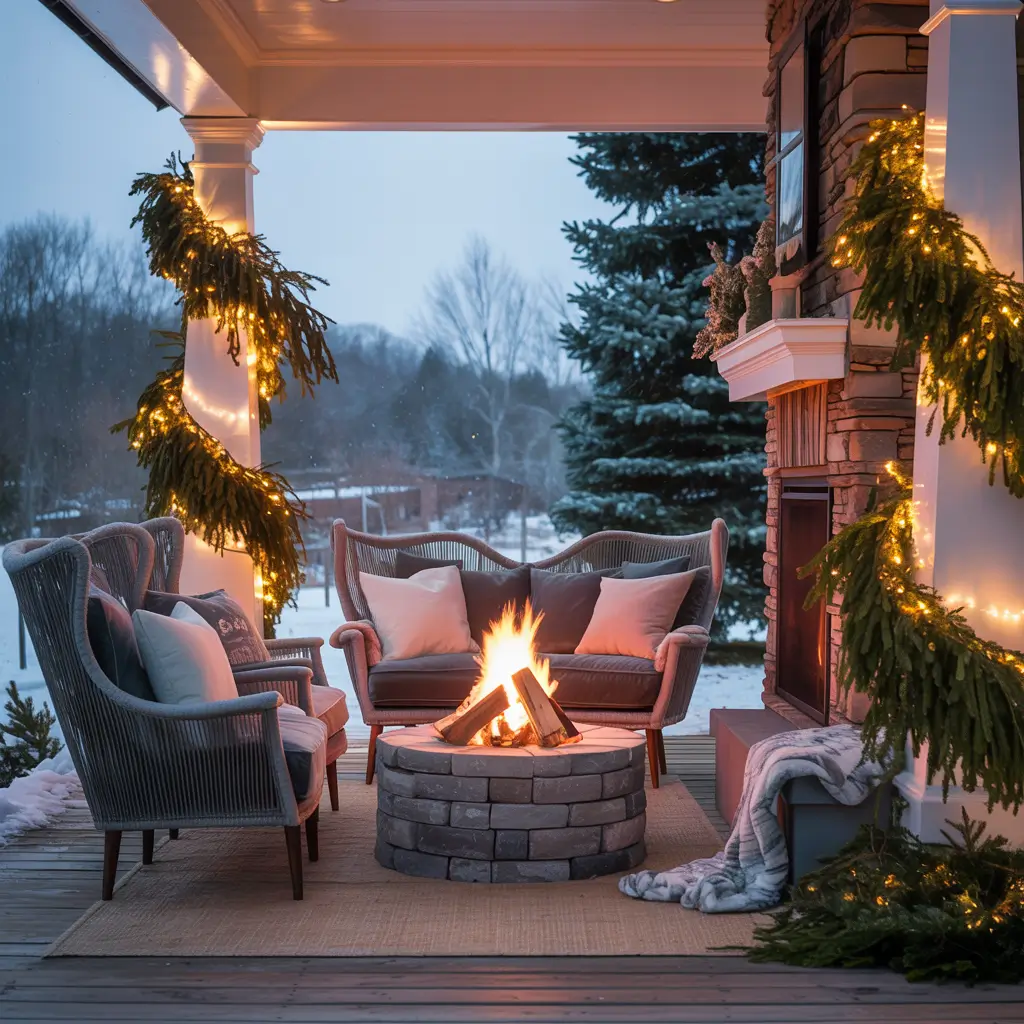 Adding a portable fireplace to my porch changed everything. Suddenly, we had a reason to sit outside in December. Add cozy blankets, hot chocolate supplies, and comfortable seating, and you’ve got the perfect holiday hangout spot.