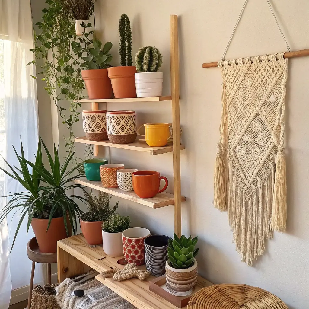 Boho style celebrates creativity and collected treasures. This aesthetic layers colors, patterns, and textures for a coffee bar that feels artistic and free-spirited. Rules? What rules?