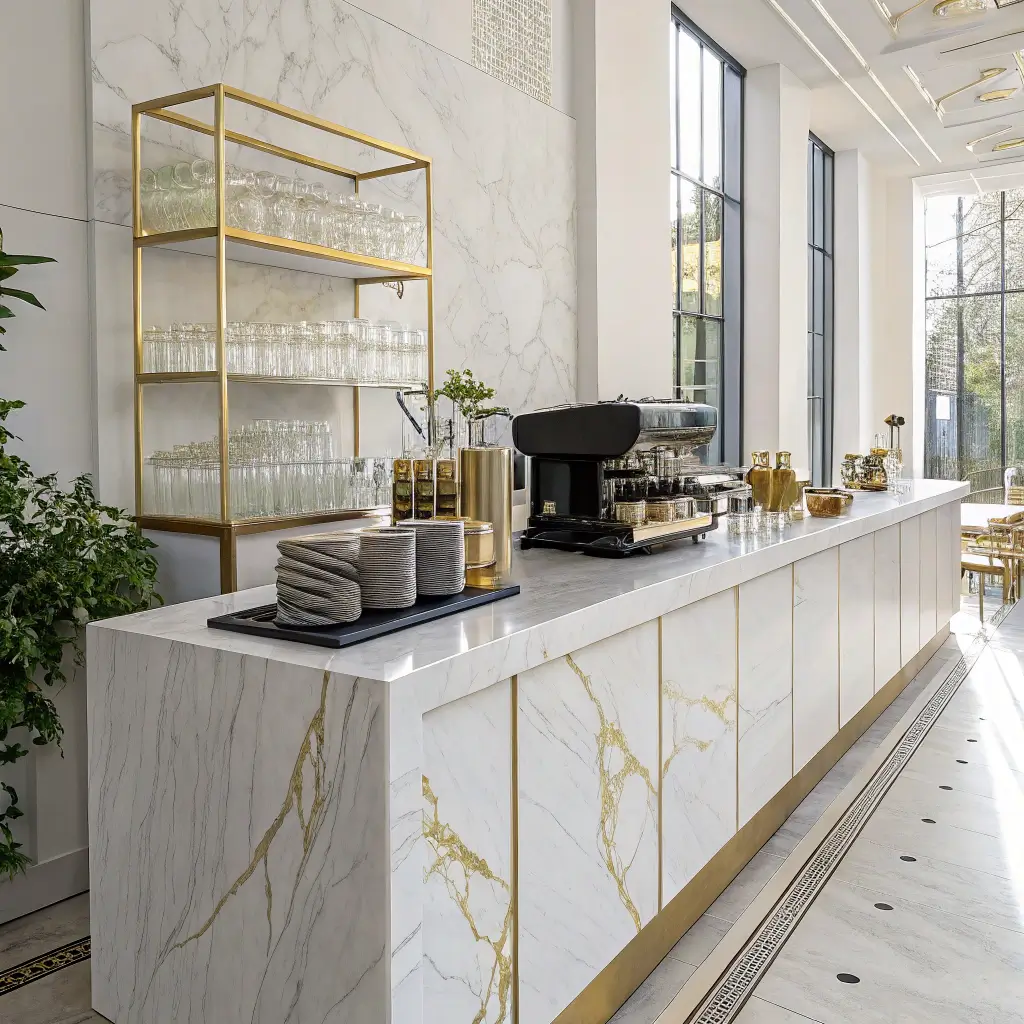 This aesthetic screams luxury without saying a word. Marble elevates everything it touches, making even instant coffee feel fancy. It’s the coffee bar equivalent of wearing pearls with jeans.
