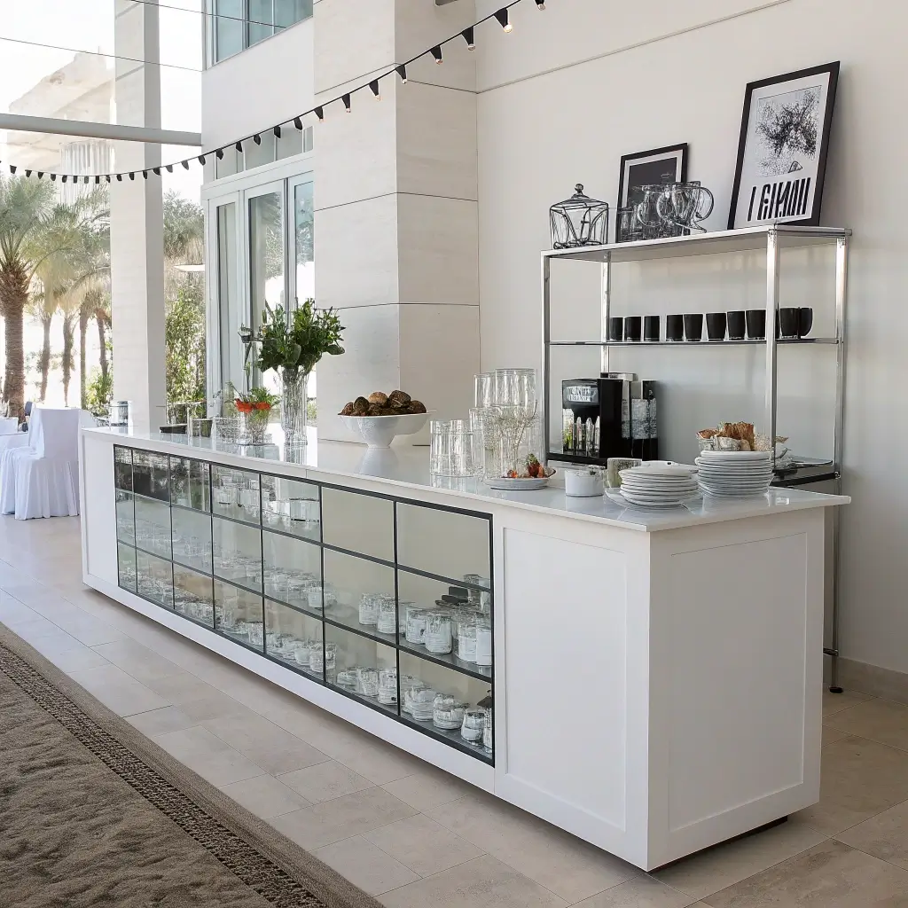 Sometimes less really is more, especially when you’re hosting a sophisticated soirée. A minimalist coffee bar proves you don’t need bells and whistles to impress – just clean lines, quality coffee, and intentional design choices.
