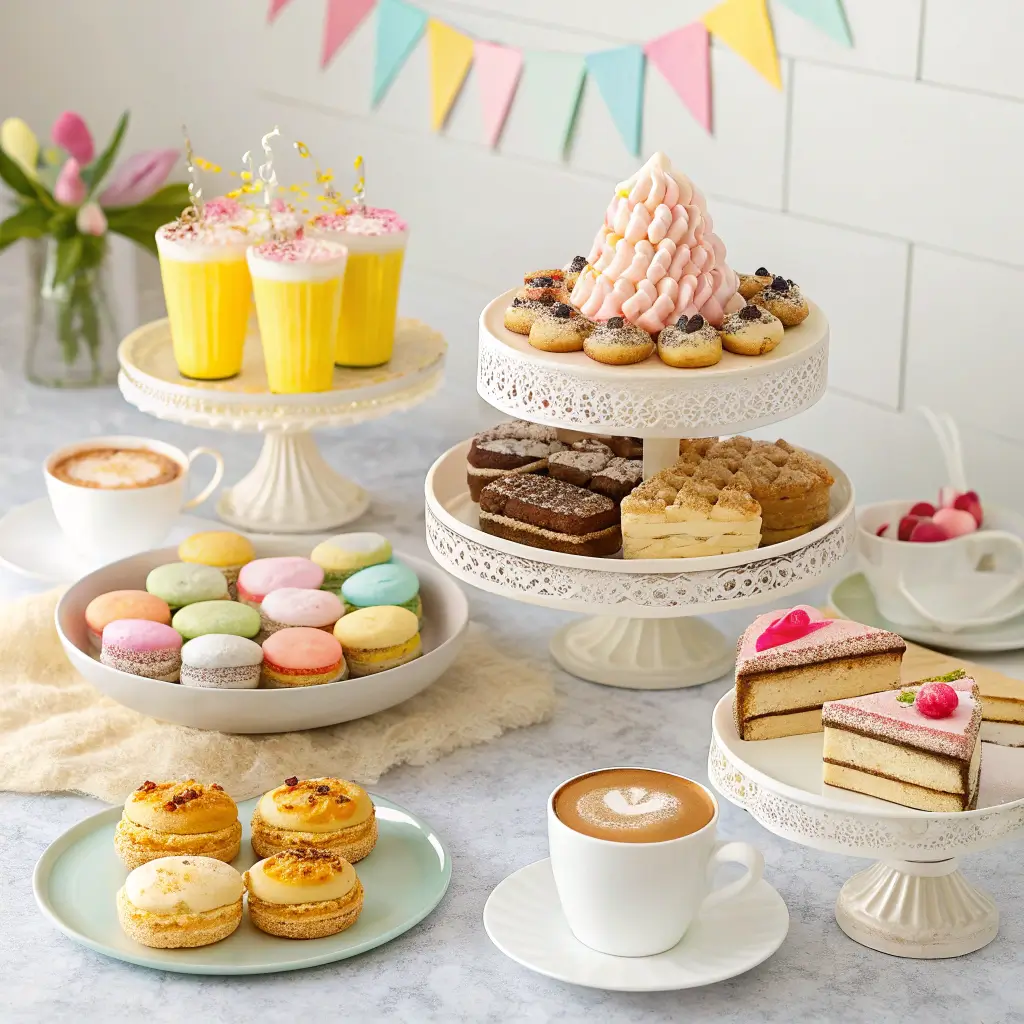 Arrange desserts at varying heights using cake stands and tiered trays. This creates visual interest and makes everything easily accessible without crowding.