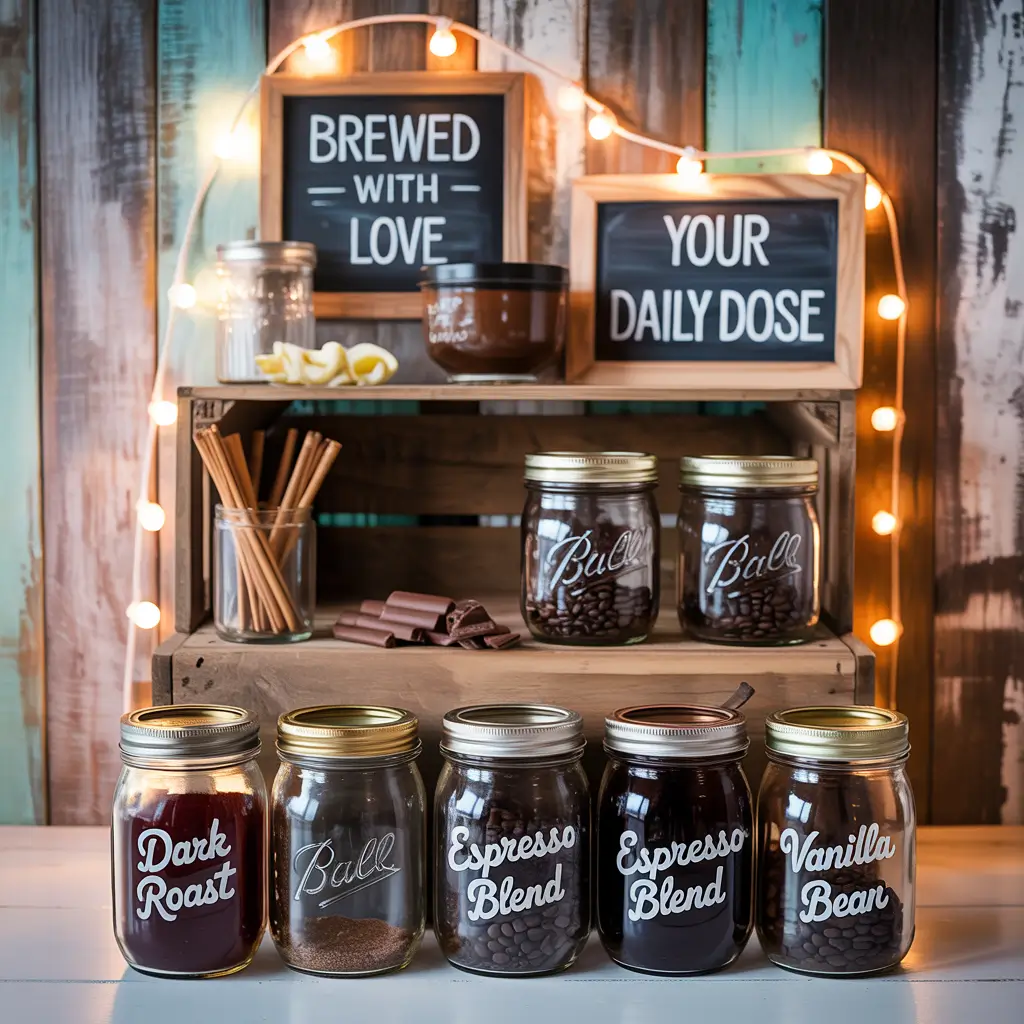 Mason jars and parties are a match made in Pinterest heaven, but there’s a reason this trend stuck around – it actually works. DIY mason jar coffee bars combine function with that homespun charm everyone secretly loves.