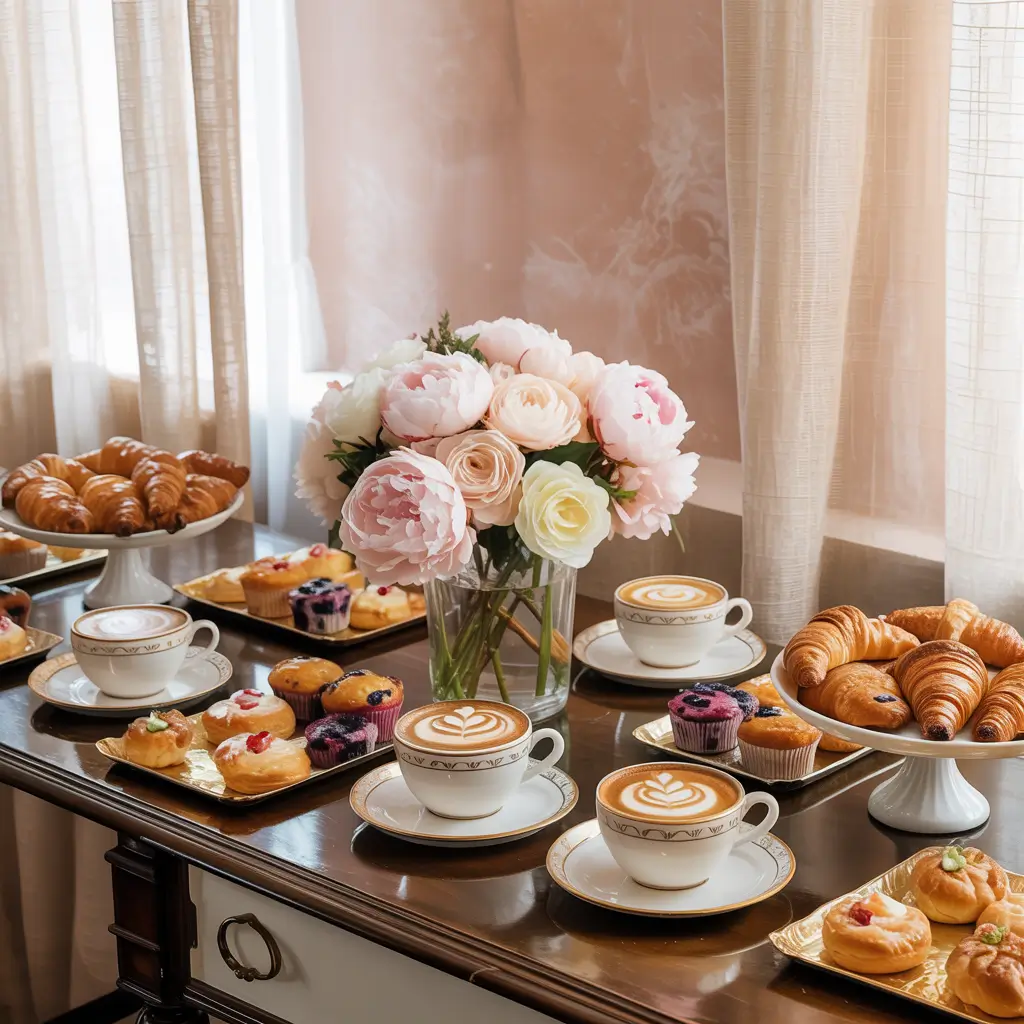 • Mini pastries arranged around the coffee station