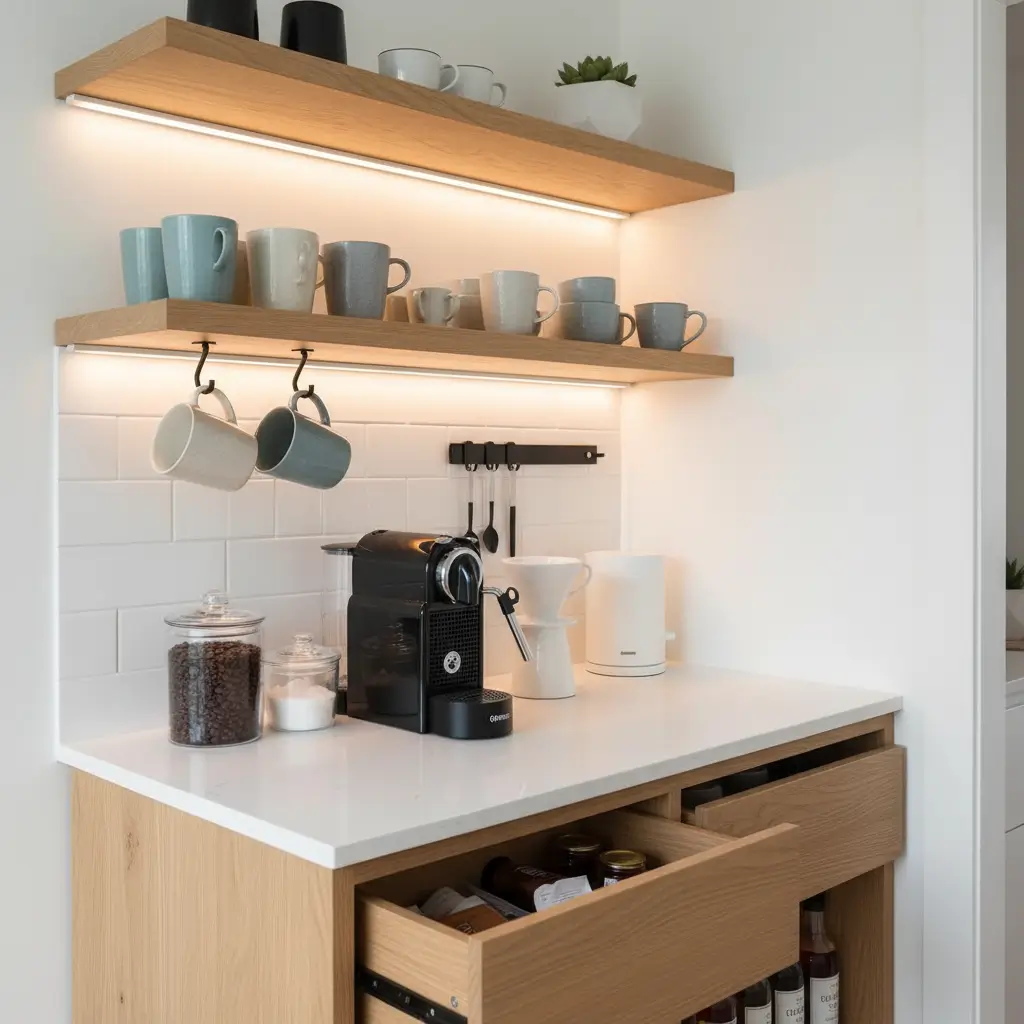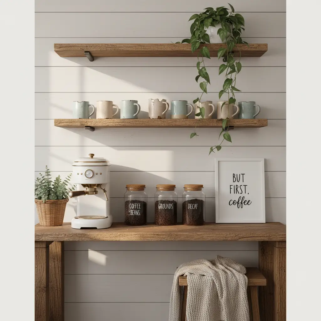 I’ve spent the last five years experimenting with different coffee bar setups, and floating shelves consistently win for both style and practicality.