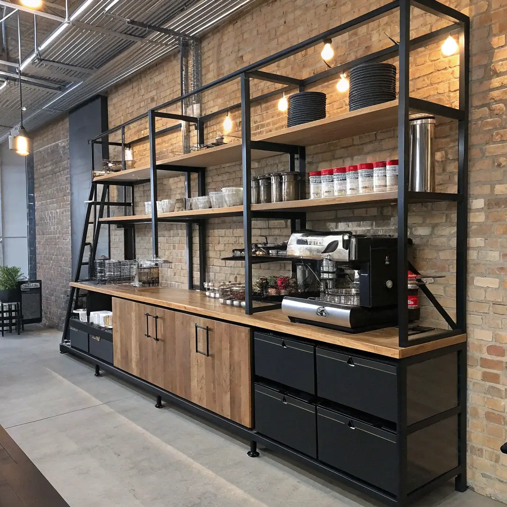 Raw, edgy, and undeniably cool. The industrial floating shelf coffee station brings that urban loft vibe to any space.