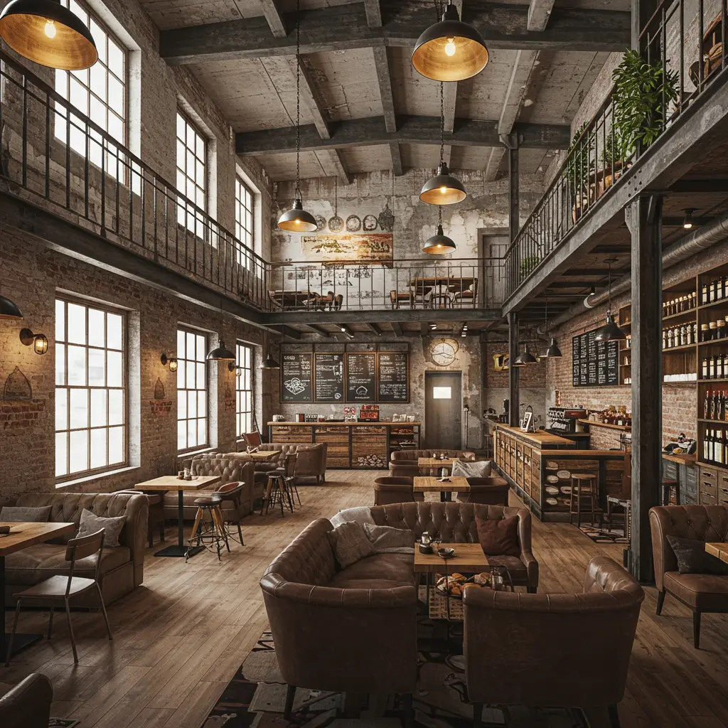 Height becomes your friend in loft designs. Soaring ceilings, mezzanine levels, dramatic lighting – everything emphasizes vertical space. One loft café has a 30-foot ceiling with suspended box seating areas. Completely impractical, absolutely unforgettable.
