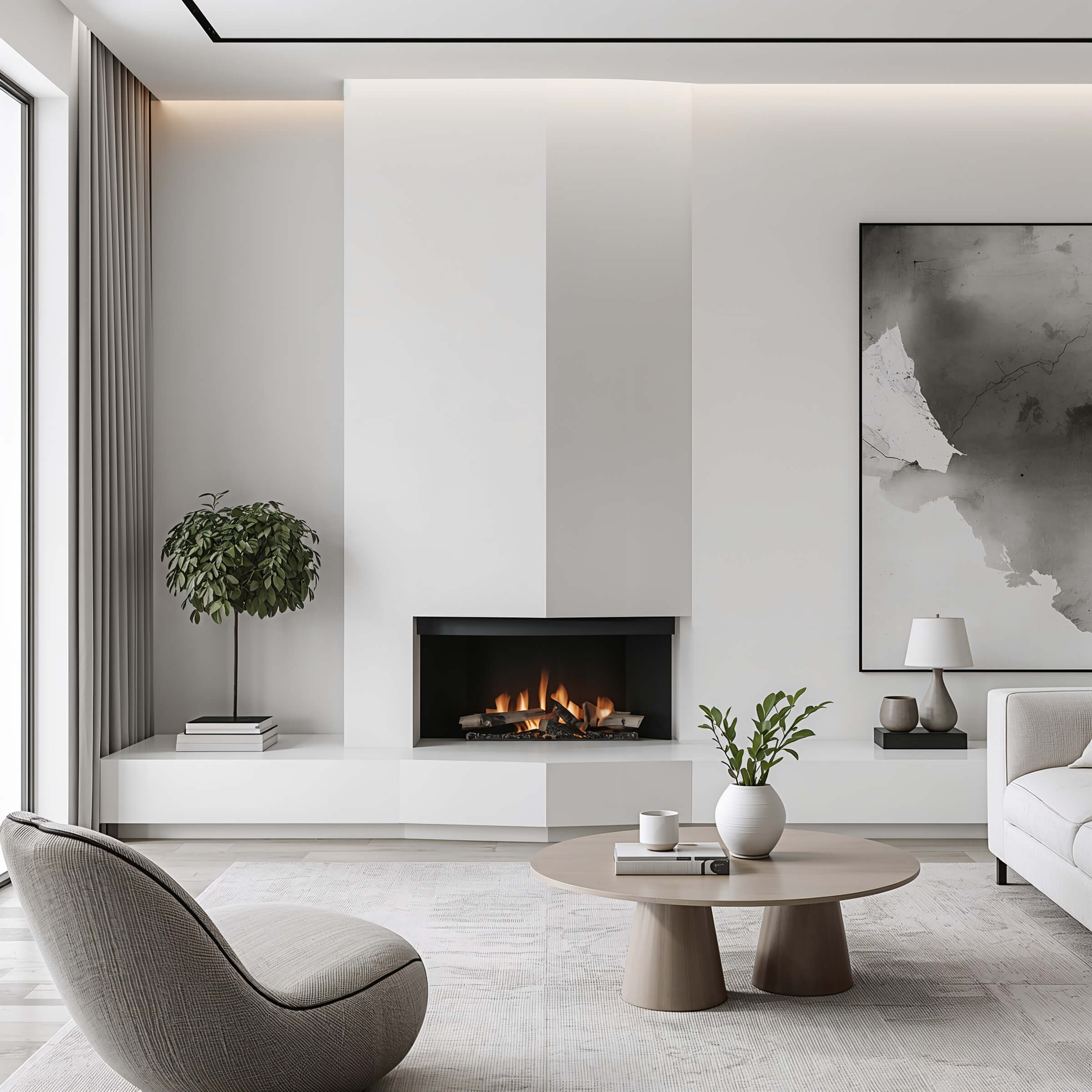 2. Minimalist Modern Corner Fireplace Styling
